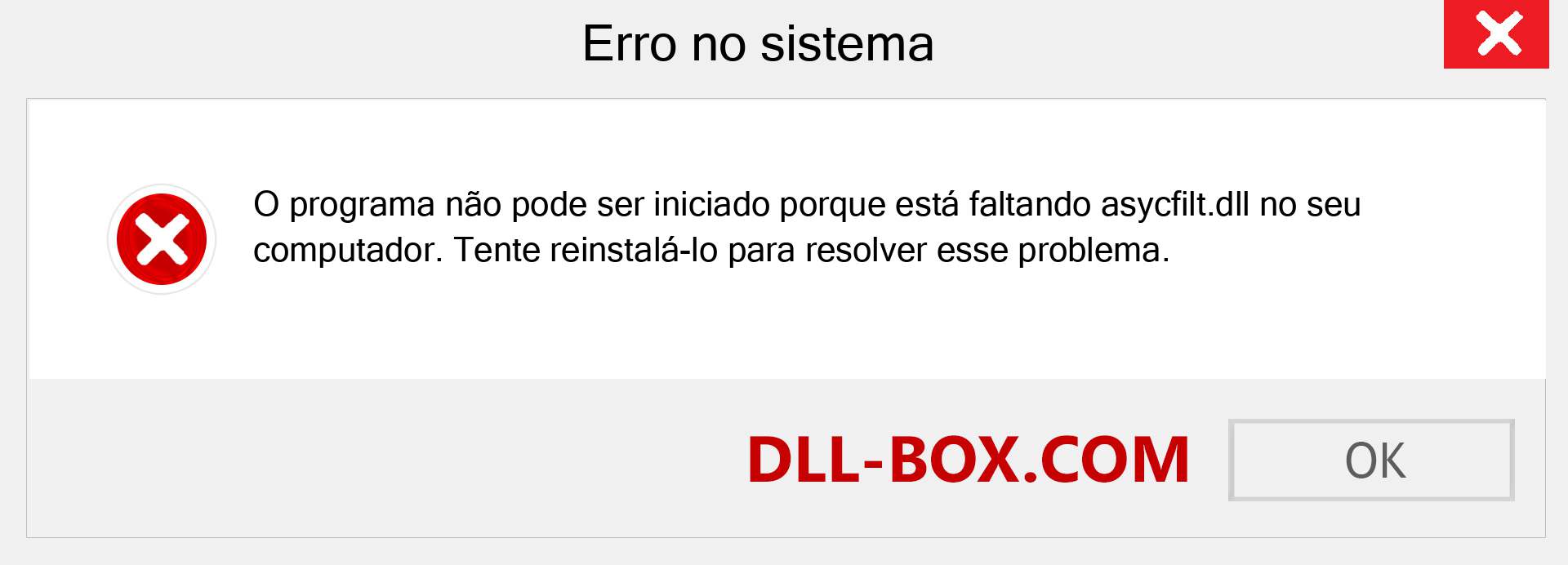 1. O programa não pode ser iniciado porque está faltando asycfilt.dll do seu computador. Tente reinstalar o programa para resolver este problema.